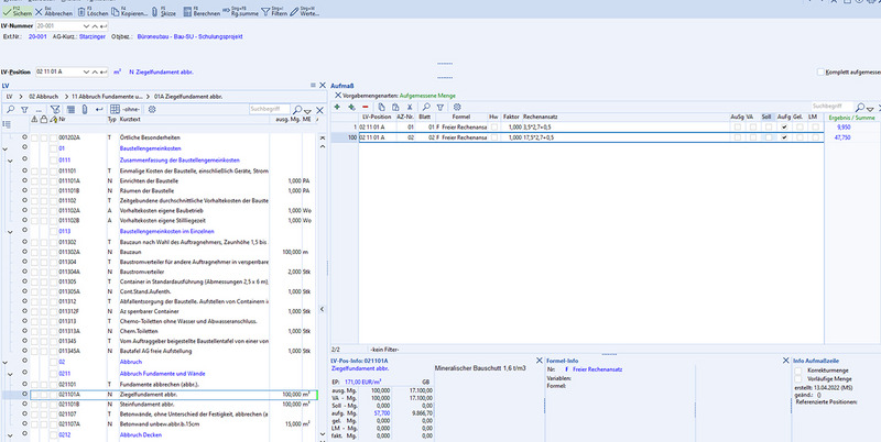 - LV-Aufmaßzeilen erfassen mit Liste