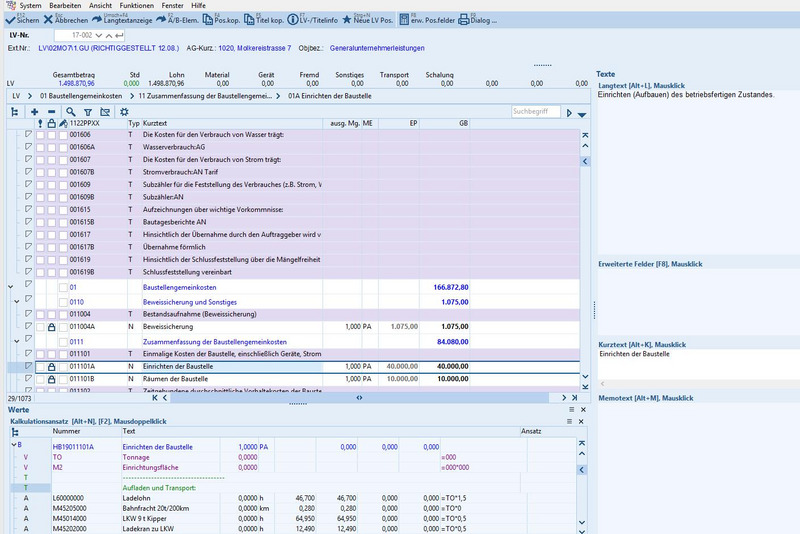 LV-Angebots-Kalkulation / Baukalkulation